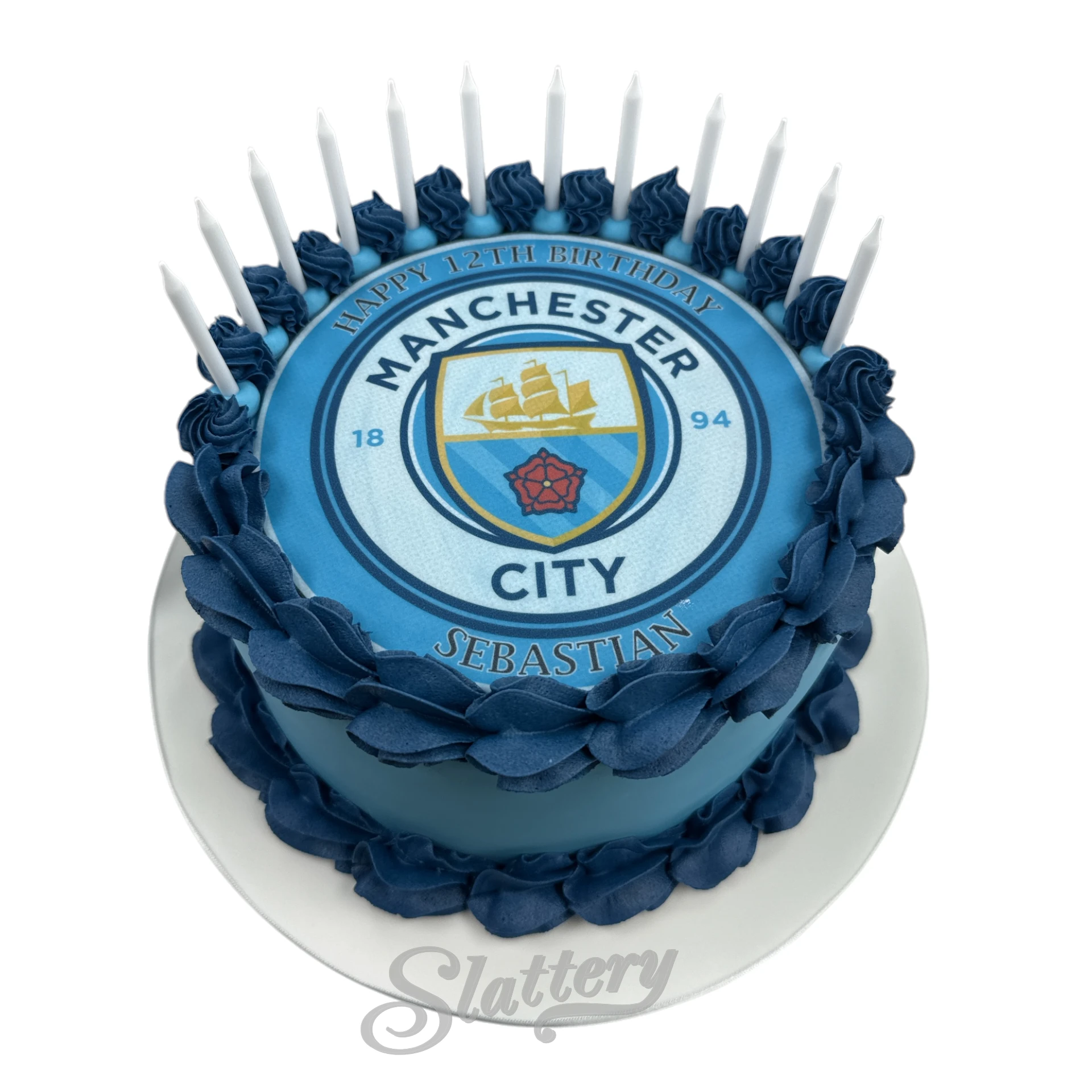 All our celebration cakes are made to order, we can alter any colours and details to suit your requirements. The prices below are for vanilla sponge, jam & buttercream, please see the ingredients & allergen tabs for further options. Due to the shape and structure of some cakes, a thin layer of white chocolate may be used over the sponge.