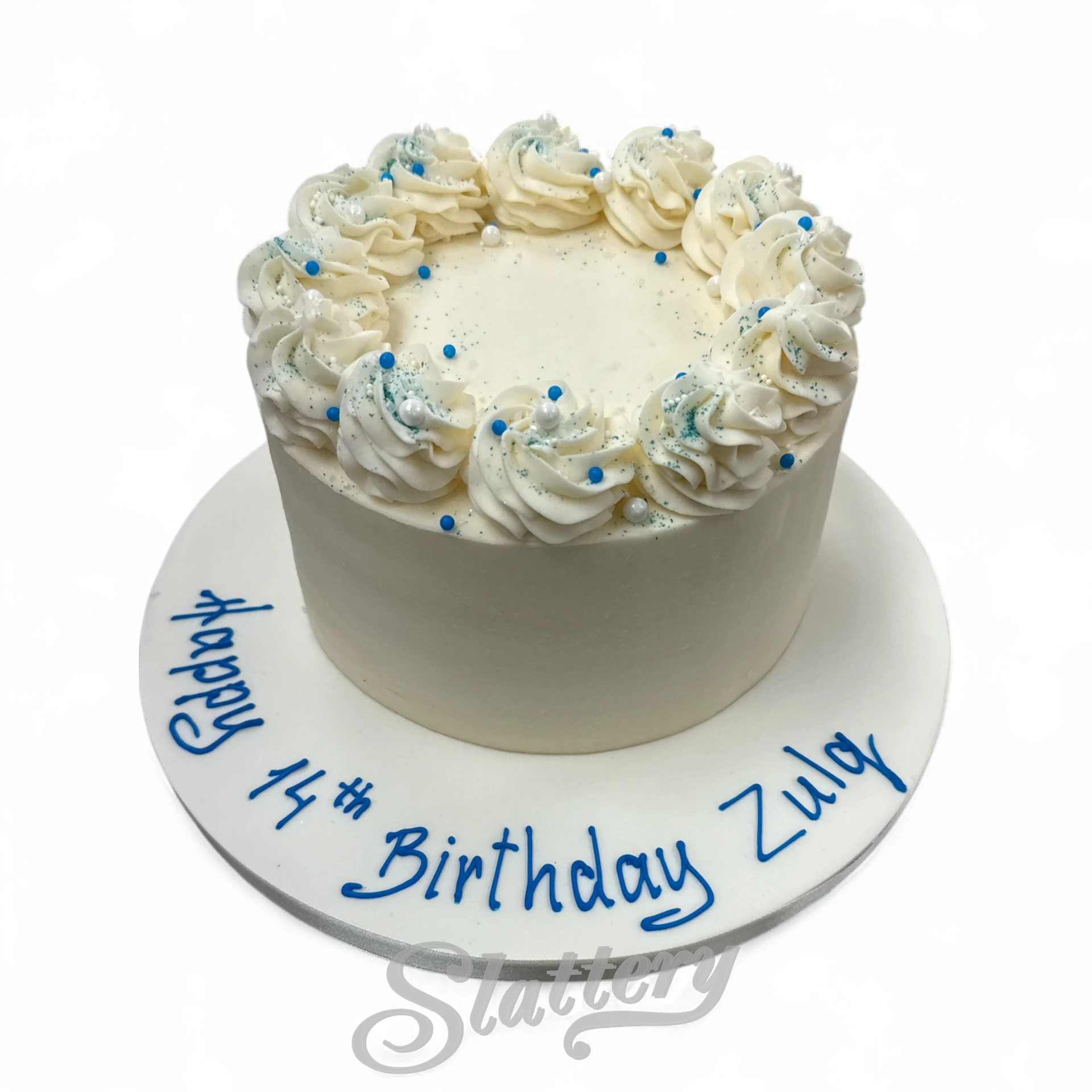 All our celebration cakes are made to order, we can alter any colours and details to suit your requirements. The prices below are for vanilla sponge, jam & buttercream, please see the ingredients & allergen tabs for further options. Due to the shape and structure of some cakes, a thin layer of white chocolate may be used over the sponge.