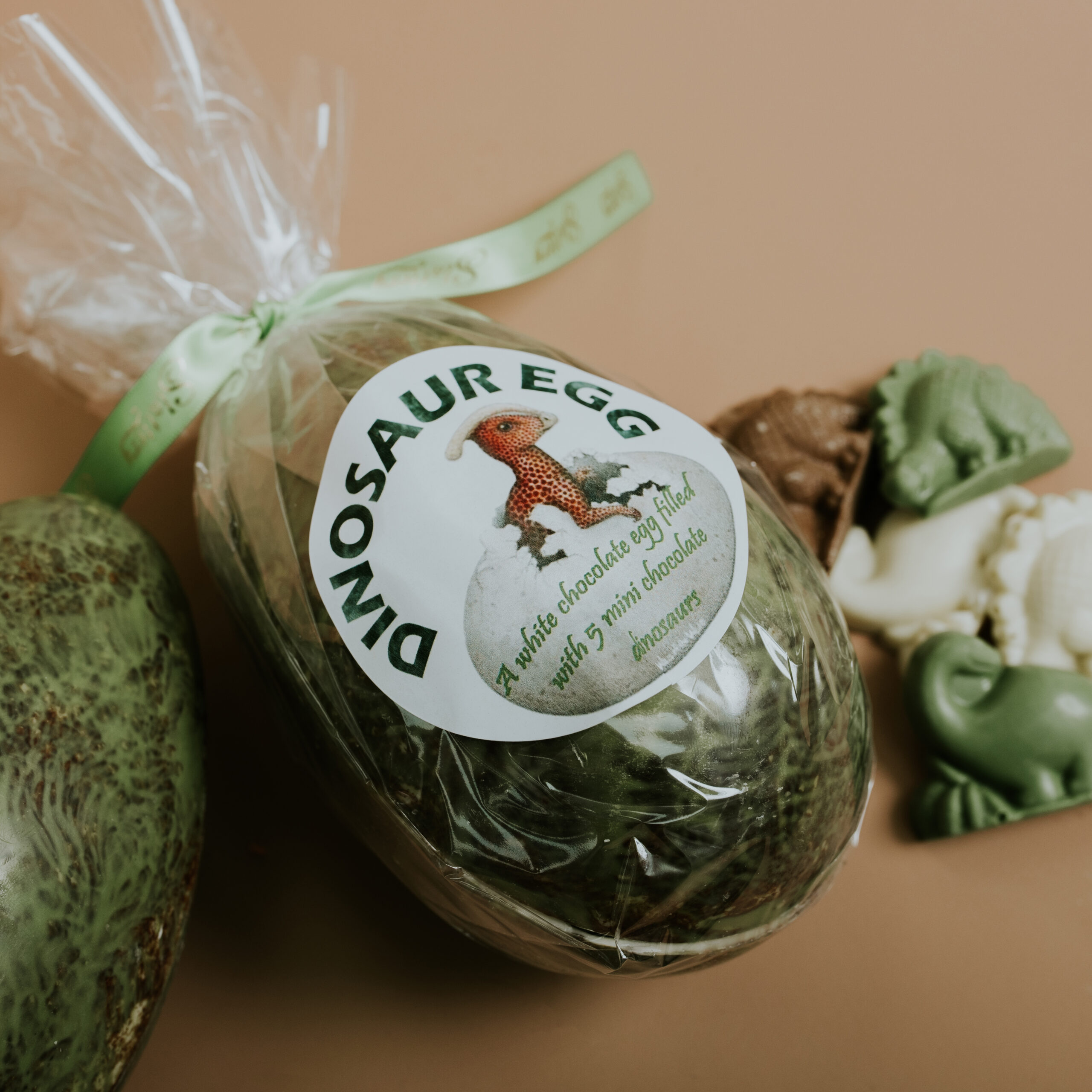 Milk chocolate egg topped with milk choc swirls and malt balls.